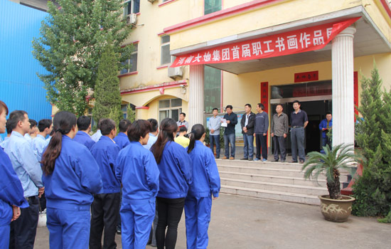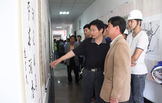 激情红五月  大地飘墨香 (本报讯)5月8日上午,由大地集团主办的首届职工书画作品展颁奖仪式在大地公司中控楼前举行。集团党委副书记闫中安、董事长助理崔书箱、宝丰县书法家协会主席孙战生、名誉主席姚振乾、县政协文史委主任董国范以及获奖作者参加颁奖仪式。 在颁奖仪式上,县书法家协会主席孙战生宣读了获奖名单,名誉主席姚振乾代表县书法家协会向获奖作者表示祝贺,集团党委副书记闫中安宣布大地集团首届职工书画展开幕。 今年4月份以来,大地集团为了活跃企业职工文化生活,展示一线职工文化风采,与县书法家协会共同举办大地集团首届职工书画展。活动开展以来,共收到来自一线职工书画作品30余幅,经县书法家协会组织专家评审,来自大地集团保卫处的袁国锋荣获一等奖,来自大地公司包装车间的刘国敏、富平春酒业有限公司的王永亮分获二等奖,另有获得鼓励奖的职工若干名。 翰墨飘香醉大地,小桥流水画中来。走进大地中控楼一楼,装裱一新的40余幅参赛作品及祝贺作品,宛若一道美丽的文化风景线,把大地装扮得如此多娇、美不胜收!一幅幅书法作品或遒劲有力或行云流水,一幅幅美术作品或写尽春绿或挂满秋韵。有谁相信,这一幅幅书画作品竟然来自大地集团一线职工之手,正是这一双双打满老茧的大手把大地之美写在宣纸上,迸发心灵最强音,描绘精神新家园,书写文化新天地,展示大地新形象,使大地之美尽收眼底。 荣获一等奖的大地保卫科职工袁国锋高兴地说,长期以来,大地集团非常重视企业文化建设。我作为大地集团的一名职工,在本次书画展中获得一等奖,感到非常高兴。我一定倍加珍惜这份荣誉,继续创作优秀作品,陶冶情操,歌颂大地,赞美生活,快乐工作。