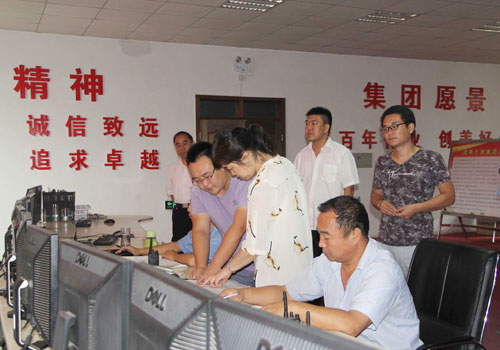 9月13日上午,全国文明卫生城市验收组一行到大地公司检查创建工作。 在集团副总裁、大地公司总经理赵中要等领导的陪同下,检查组一行先后到中控室、烧成车间、脱硝车间等地,重点了解污染防治设施配备及运行情况,查看了污染物排放的监测数据和历史记录。并深入现场检查了脱硝、除尘设施的运行情况。 检查组一行对大地公司加大环保投入,在环保治理方面所采取的措施和取得的成效给予了高度评价。并希望大地公司加大环保科技创新力度,提高污染治理水平,为宝丰创建生态文明城市作出新的更大的贡献!   检查组一行查看污染排放的历史数据