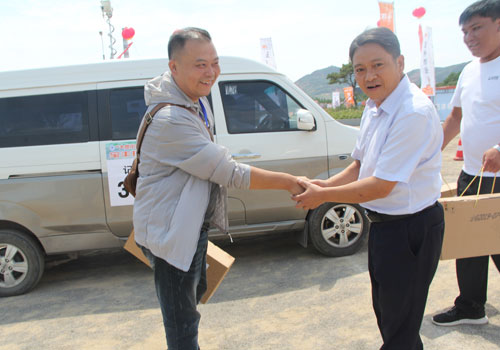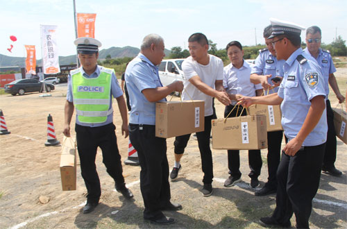 作为此次总冠名赞助商,广大一线工作人员的辛苦付出时刻牵挂着大地集团领导的心,为感谢为赛事辛苦付出的广大一线工作人员, 8月31日上午,受大地集团董事长张彪的委托,集团总裁王国杰一行来到宝丰县大营镇清凉寺村的宝丰汽车文化主题公园各执勤点进行看望慰问,为城市管理局、公安局交警队、宝州文体公司、供电公司、融媒体中心等单位的工作人员送来了慰问品,送来了大地集团领导的关爱。