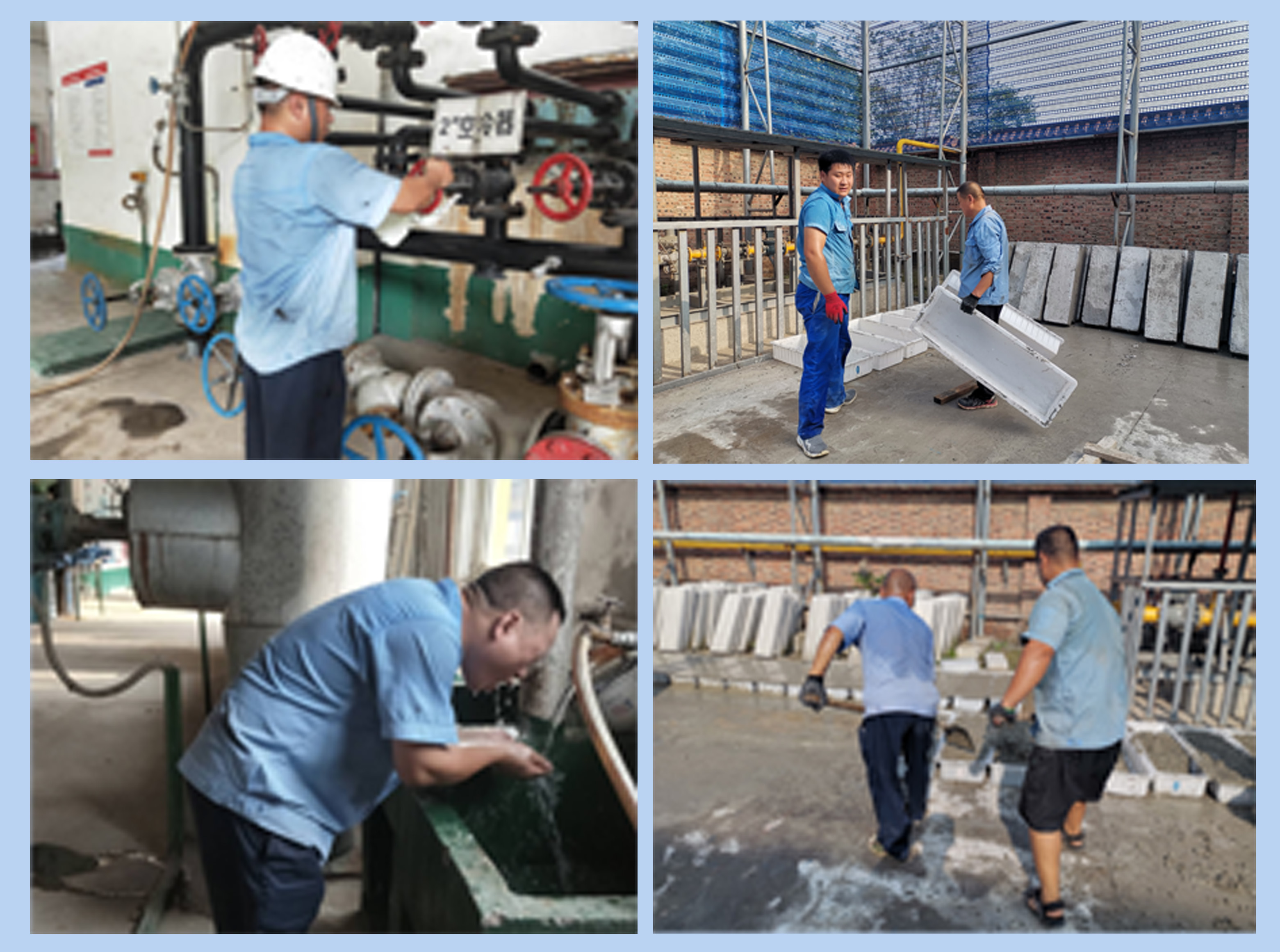 面对高温天气和高强度、高负荷的劳动强度,各个公司把做好防暑工作放在第一位,科学组织生产、合理安排作息时间,积极出台防暑应急预案,为职工配备藿香正气水、人丹、甘桔汤等防暑降温品,开展劳动安全卫生和防暑降温知识宣传教育,提高一线职工高温作业的自我保护意识和防范能力。坚决打赢暑期健康生产、安全施工的攻坚战。