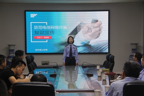 9月1日下午,县公安局反诈中心吴晓晓老师一行来到大地公司,在中控楼三楼会议室开展网络电信“反诈骗”知识讲座,公司各部门负责人及部分员工代表参加了学习。