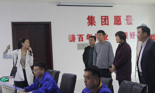 随后,姚桃叶一行来到中央控制室,集团领导汇报了整个干法水泥生产线的工艺流程、环保工作投入情况,重点阐述了集团公司城市生活污泥处置、智能化皮带廊道、铁路专用线等方面的建设和运行情况。