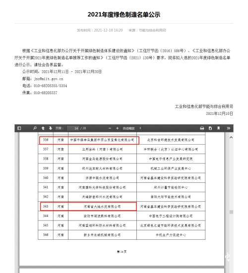 | 大地水泥公司成功入选国家级“绿色工厂”