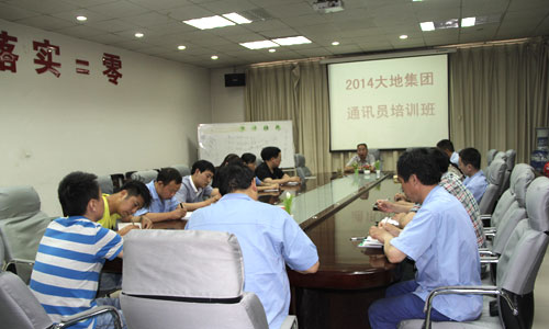 为提高通讯员的写作水平和综合素质,提升《大地集团报》的质量,5月30日,集团在大地公司中控三楼会议室举办了通讯员培训班。来自各部门、各分公司的近20名通讯员参加了培训。县政协文教委主任董国范前来授课。培训班上,董老师分别从办报理念到版面设计安排,结合实际,分别讲了新闻写作的方法和技巧,重点讲了消息、通讯、报告文学等方面的写作知识。董主任结合自身丰富的实践经验,通过通俗易懂的举例和生动形象的讲解,极大调 动了学员们的学习兴趣,大家踊跃发言,就自己写作过程中遇到的实际问题虚心求教。通过培训,大家学到了很多,纷纷表示,要多学习,多观察,以写作为乐,以写出好作品为荣,为《大地集团》报提供优质的稿件。  大地通讯员培训会场 |