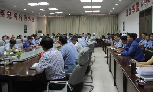 6月2日-3日,集团相继召开大地公司班组长以上人员会议及财务、供应等后勤部门工作会议,问计于员工,问策于员工,集全员之智,聚全员之力,切实解决公司发展过程中存在的问题,全面推进各项工作再上新台阶。 会议采取现金奖励的激励机制,对当场认可并被采纳的合理化建议,每条当场奖励 200元。对需经过论证被采纳的建议,即时兑现。对因客观条件所限难以解决的问题,要实事求是地向大家解释并说明情况,真正做到件件有落实,事事有回音。会上,广大员工结合自身工作实际,查问题、找漏洞、提建议,踊跃发言,各抒己见,大胆建言献策,提出了许多有关节减排、技术改造、企业文化建设等涉及方方面面的意见和建议近200条。针对大家反映的问题,通过现场分析研究,当场能解决的当场解决,解决不了的,指定一对一责任,规定完成时限和奖罚措施。真正做到提一条建议、促一项管理、堵一个漏洞、降一项成本的实效,着力解决影响和制约公司发展的各种“瓶颈”。  献计献策会议现场 |