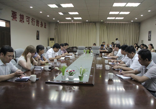 7月3日上午,县委常委、宣传部长李庆豪带领县发改委、信息中心、广电总台有关负责人到大地公司进行集中采风。  在大地公司三楼会议室召开的座谈会上,大地水泥、宝丰酒业、京宝焦化、五星石墨4家企业的有关负责人及职工代表参加了座谈。发改委负责人汇报了上半年我县的经济运行情况及下一步的工作思路。大地集团副总裁李保录汇报了1-6月份公司的生产运营情况、面临的问题以及所采取的措施。宝丰酒业、京宝焦化、五星石墨负责人也分别汇报了当前各自企业的生产经营状况。李庆豪部长作了总结讲话,他表示,新闻媒体要深入企业宣传报道,找出制约企业发展的症结,帮助企业理清思路,创新发展,开拓市场,共同推动县域经济的平稳快速发展。 随后,采风团一行先后深入到中控室、生产车间、余热发电进行了实地参观。他们对大地公司在产能过剩,市场价格低迷的不利因素下,克服重重困难,采取有效措施,实现了销售形势淡季不淡,旺季更旺的良好局面表示赞叹。