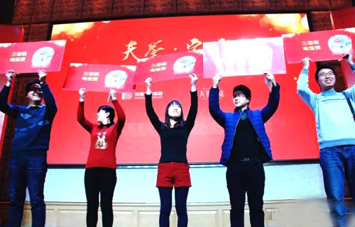 1月9日晚,“天誉·家宴——大地集团&领创·天誉华庭业主答谢会”在郑州裕达国贸酒店盛大启动,以此回馈广大业主对天誉华庭的鼎力支持和厚爱。大地集团携旗下领创置业、大地水泥、贾湖酒业等企业领导、代表,与各位业主、媒体嘉宾1000多人汇聚一堂,共同度过了一个温情难忘的夜晚。 寒冷的天气并未影响大家相聚的热情,下午不到5点,现场签到处已门庭若市,在工作人员贴心引导下,大家有序进行微信签到,进入答谢会现场。晚上6点左右,一段阐述大地集团恢宏实力和过往数载坚实历程的宣传短片拉开了本次活动的序幕。大地集团董事长张彪、贾湖酒业总经理赵书民、领创置业的执行董事殷红叶分别发表了热情洋溢的致辞。 为使各位来宾度一个欢乐充实的夜晚,“天誉·家宴”不仅有丰盛的美食、美酒,更有诸多精彩节目助兴!动感炫目的电光舞,让现场的来宾沉浸在梦幻美妙世界;展现领创·天誉华庭峥嵘发展轨迹的沙画&独舞表演,令在座各位充分领略了匠心品质的倾情缔造;炫酷的魔术表演、新奇好玩的泡泡秀,让人目不暇接;一曲《相亲相爱一家人》,天誉一家人,喜乐祥和气氛满溢! 紧接着,微信摇一摇抢红包以及多种重磅大奖的抽取颁发,将现场气氛又一次的推向了高潮。领创置业精心准备了多重好礼,表达了对于各位家人的感恩之情!苹果6S Plus、48寸液晶电视、洗衣机、电饭煲、富平春酒等丰厚礼品,超高得奖率,让不少业主好运连连,收获满满幸运大奖!寒冷的冬日夜晚因这里的欢声笑语变得红红火火、热情欢腾。 觥筹交错间,欢声笑语中,“天誉·家宴——大地集团&领创·天誉华庭业主答谢会”圆满结束。 答谢会现场