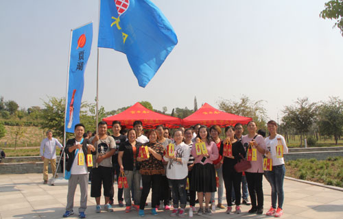 18新利(中国) >> 企业文化 >>员工风采 >> 参加“重走长征路 快乐五岳行”活动的每人领到由贾湖酒业提供的富平春酒