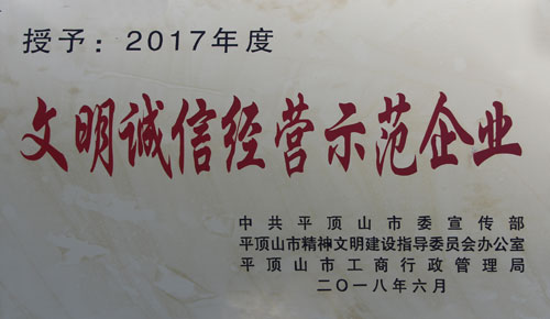 18新利(中国) >> 走进大地 >>资质荣誉 >> 2017年度文明诚信经营示范企业