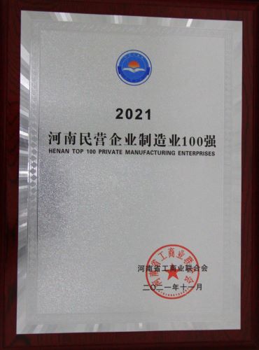 18新利(中国) >> 走进大地 >>资质荣誉 >> 河南民营企业制造业100强